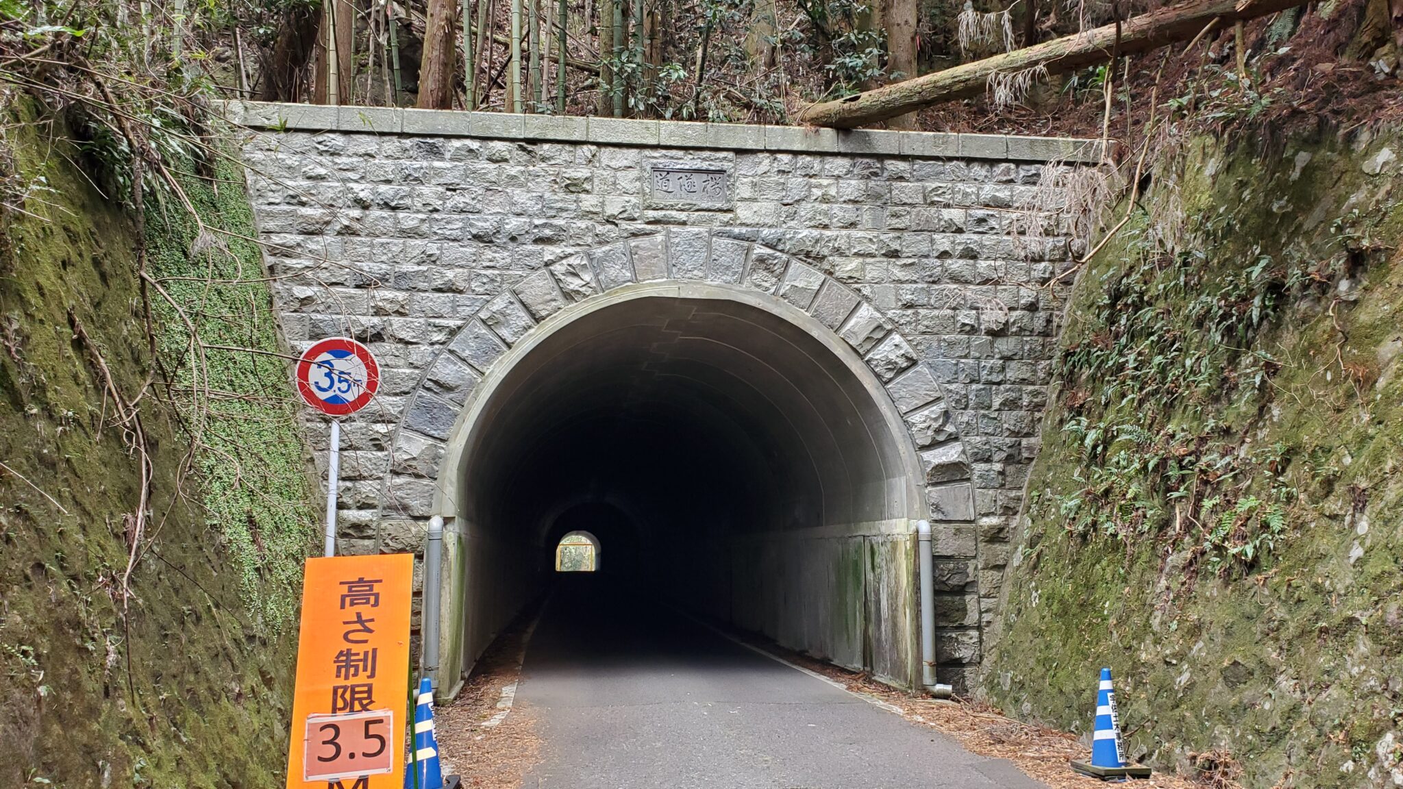 隧道の石材は苔などが無く新しそうな印象を受けるが、他の方のブログを見るに以前は周りの石垣のように苔むしていたようだ。