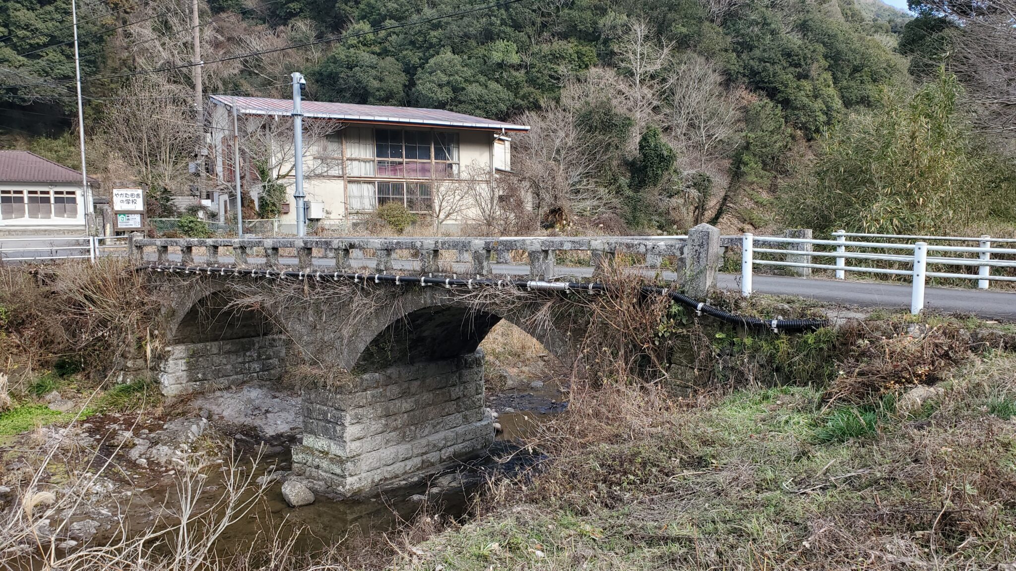 年末の大分旅で目的地に向かっている途中、ふと石造りの2連アーチ橋が見えたので立ち寄ってみた。